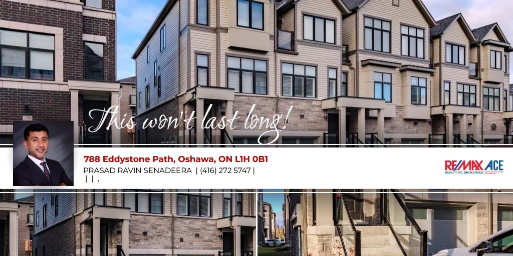 Beautiful Freehold End Unit Townhouse with 2 Master En-suite Bedrooms, Upgraded kitchen, Hardwood Throughout the house, Closet organizer, S.S appliances, Modern Window covers and many upgrades, Walk out to backyard from Master bed room, Close to WHY 401,407, Schools, Public Transport, GO Station, University, Durham College, Shopping and amenities. **** EXTRAS **** Stainless Steel Appliances, Garage door opener, Closet organizer, Upgraded Kitchen (38555623)